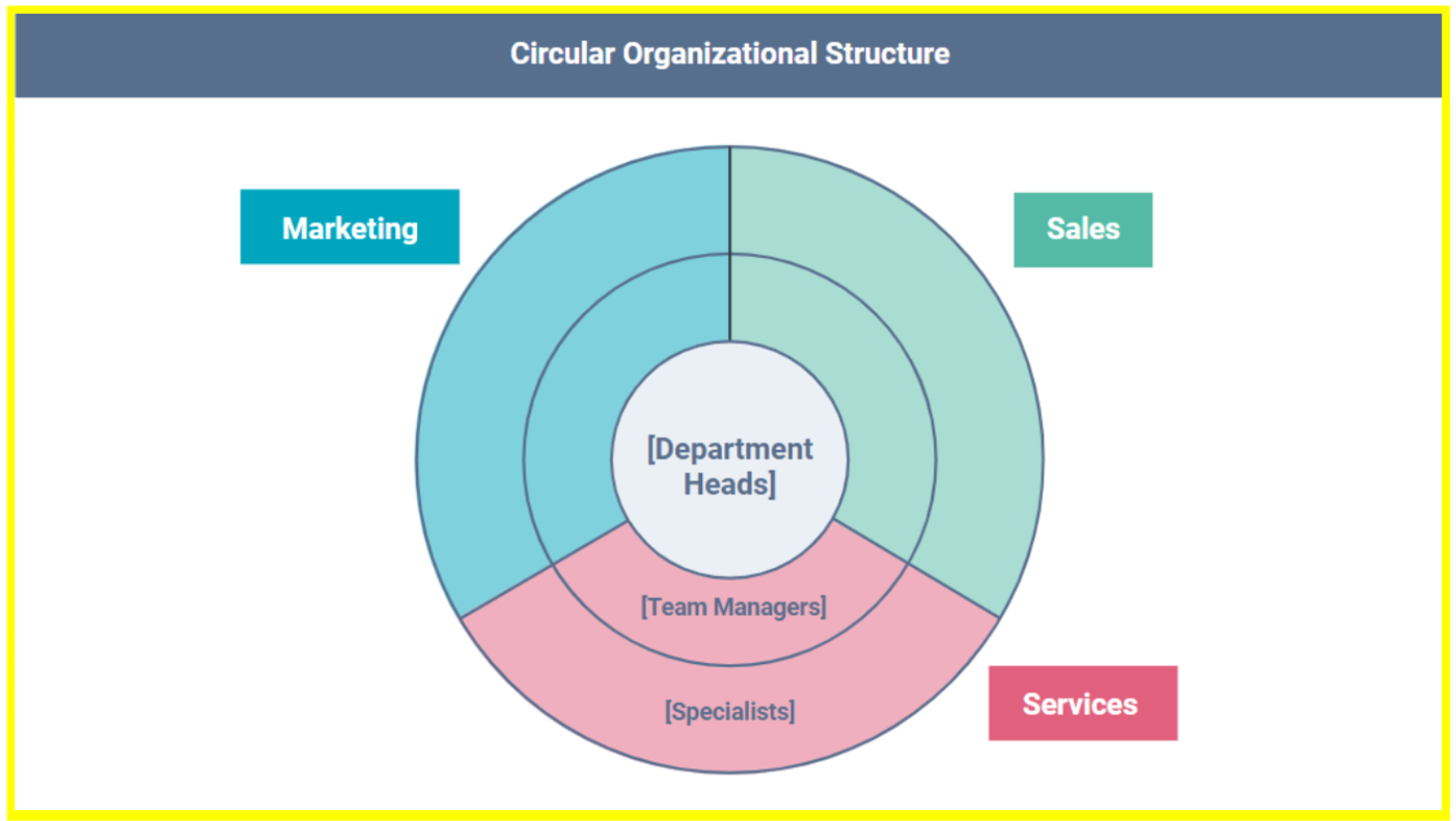 The main benefit of a Circular-based Structure is that communication between departments is encouraged, since everyone is influenced by the department head. A clear and efficient communication system has to be put in place to give constant updates to the company, otherwise the junior employees don’t share the vision and direction given by the department heads.